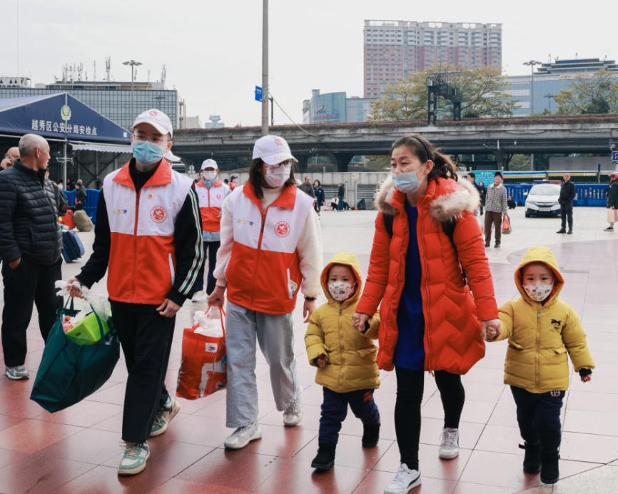 2024年春运拉开帷幕之际,在广州火车站,有一群身穿红马甲的青年志愿者忙碌穿梭在各个角落,用心用情温暖着春运旅客的回家路——来自广州医科大学的学子无惧严寒,守候在候车区,协助工作人员维护秩序、引导旅客,并为他们提供各类暖心服务。