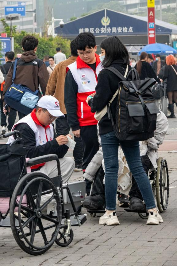 在广州火车站的另一端,暨南大学、华南理工大学的志愿者们也活跃在春运志愿服务的第一线。