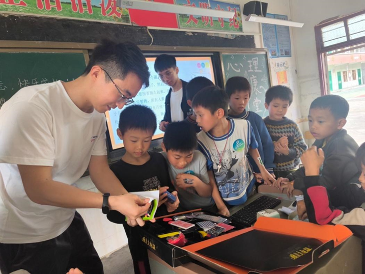 队员与当地学生互动(图源:华南师大紫荆青年公众号)