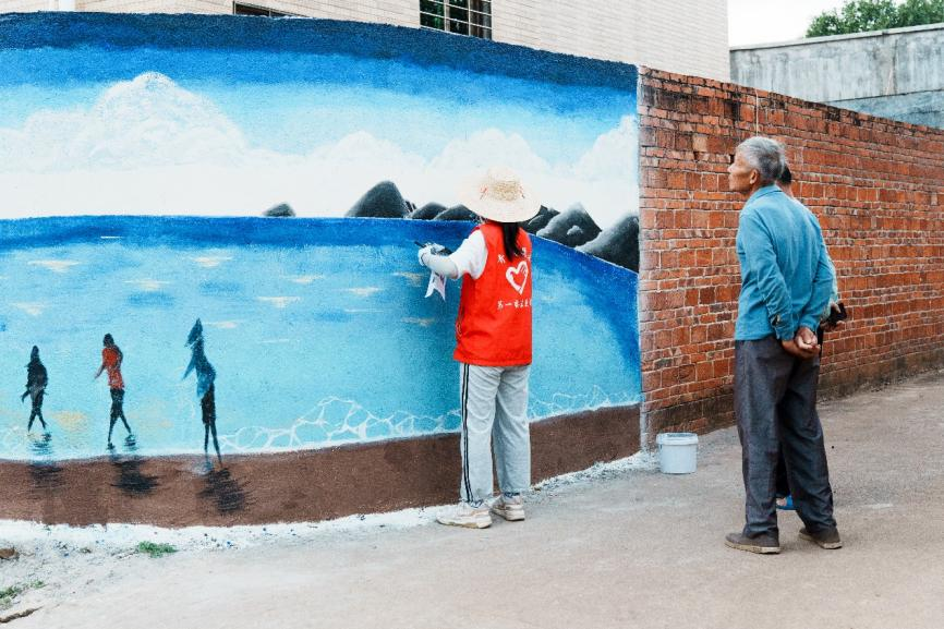 广东医科大学学子为西连镇村民进行墙绘