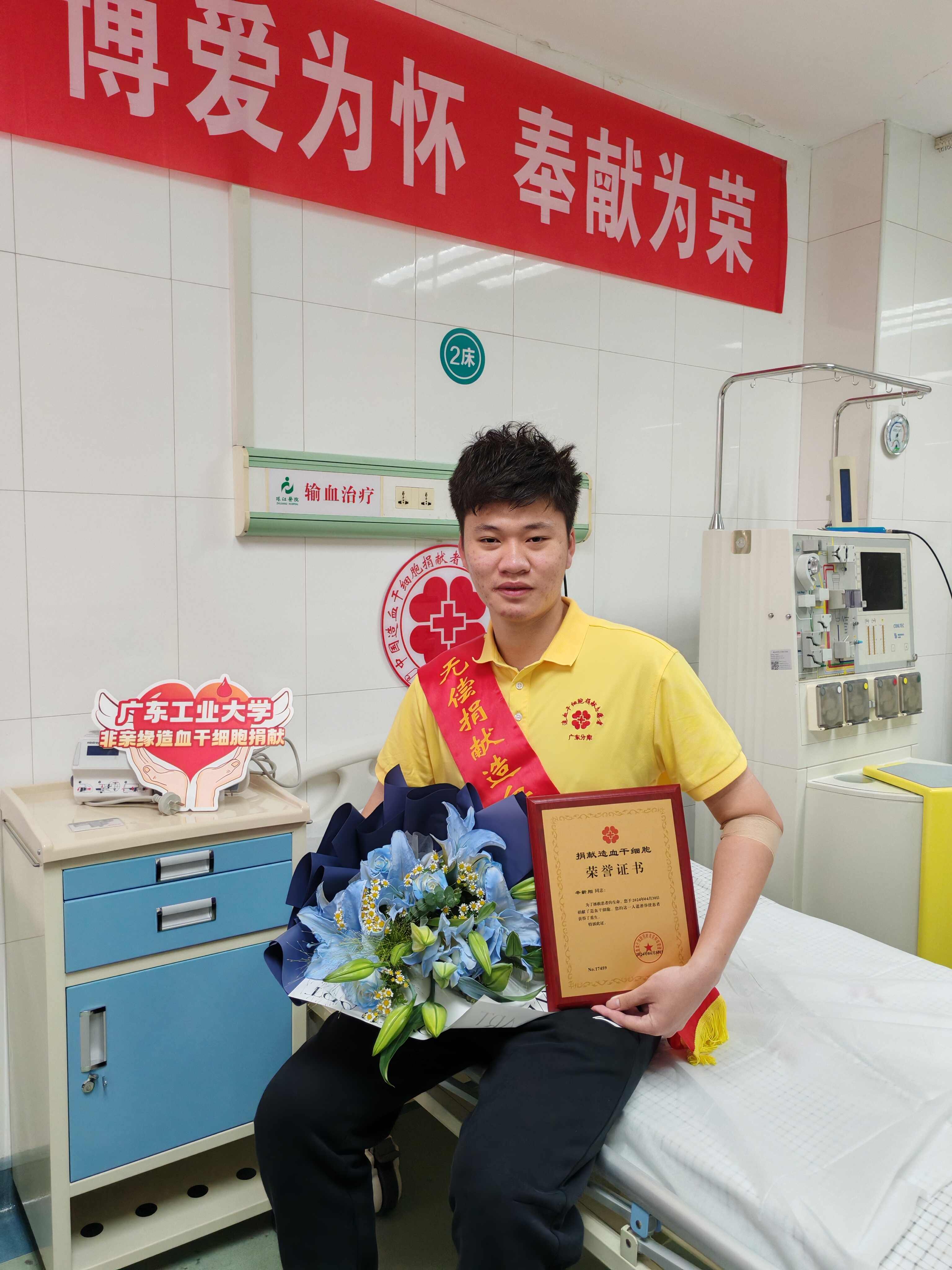 捐献造血干细胞不是“心血来潮”,而是多年来的坚持和坚定。刚满18岁,还在读高三的辛新翔就完成了第一次献血,送给了自己一份特别的成人礼。入读广东工业大学后,辛新翔加入了轻工化工学院红十字会医疗部,在为同学们做服务和科普的同时,自己也更加深入学习了捐献造血干细胞的相关知识。2022年5月,在学校组织的一次全血捐献活动中,辛新翔加入了中华骨髓库。“我想着万一真能用得上,帮助挽救患者的生命也挺好的。”辛新翔腼腆地说。辛新翔在大学三年间共捐献全血三次,累计1100毫升。