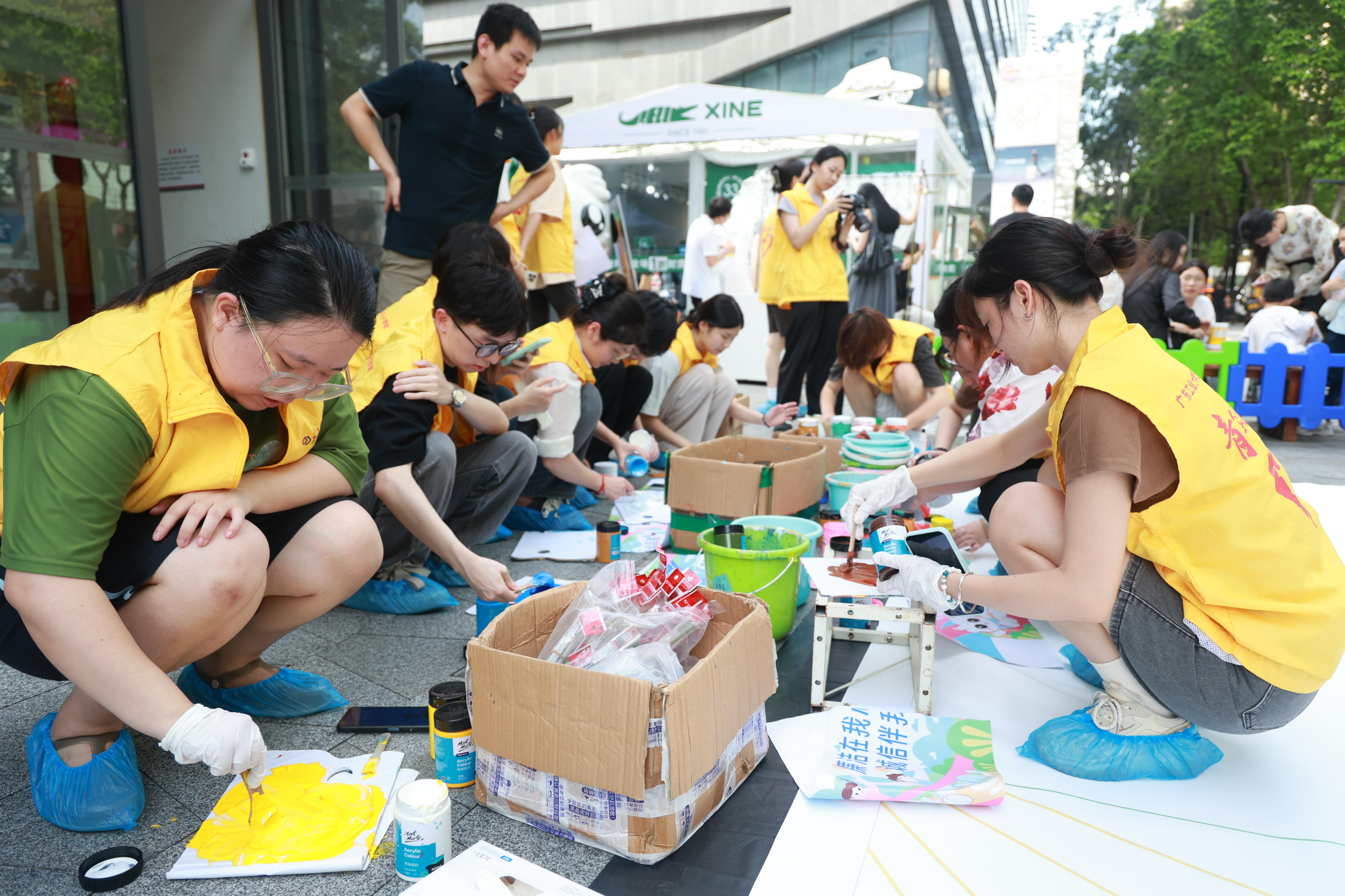 “廉洁在我心,诚信伴我行”,100平方米的主题巨型油画布平整展开,广工艺设的青年志愿者们邀请街坊群众和学生共同创作。前期专业志愿者们已历时2个月在农林下路绘制“诚信有约”主题墙绘。本次巨幅创作将安装在农林街道诚信广场墙面,融入诚信彩绘的缤纷色彩。传递诚信“好声音”,释放廉洁“正能量”,激活多彩农林诚信建设“青动力”。学生志愿者负责人刘雨乔表示,本次活动不仅为了社区美化,更重要是营造多方参与、共创的氛围。
