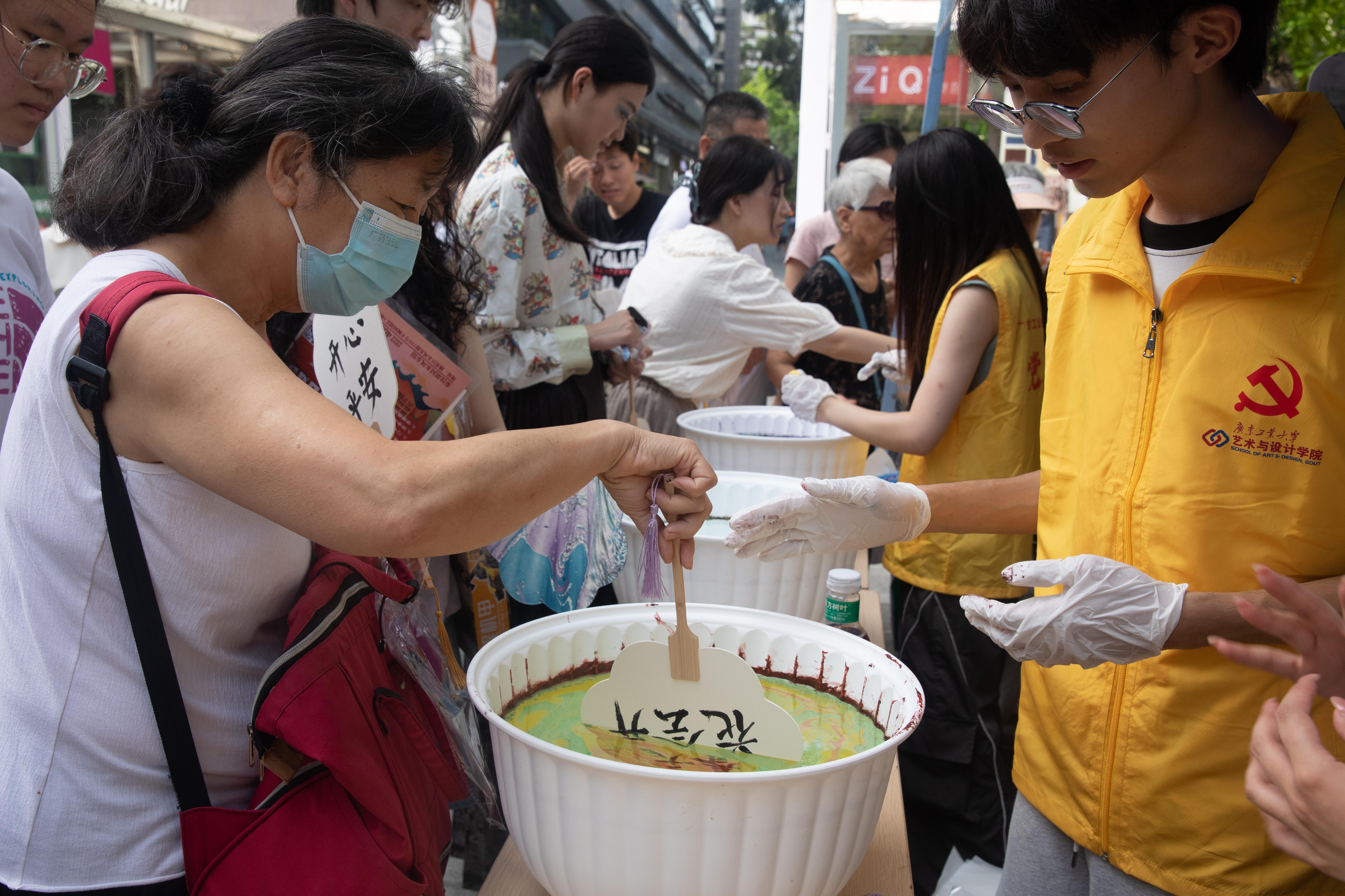 清凉一夏,一场诚信“茶画绘”,秀起!7月1日,由广州市越秀区农林街工团委和广东工业大学艺术与设计学院团委联合举办的“多彩农林 诚信有约”校地共创彩绘主题活动在农林下路举行,助力广州诚信文化建设。