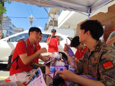 “入伍复学有多少补助?”“学生资助政策的好处在哪里?”……一些居民来到塘?镇武装部的宣传摊位进行咨询。突击队与塘?镇人民党委武装部,联合举行征兵咨询与学生资助政策宣传活动,队员们轮流向居民进行答疑。此外,突击队还辅以走动宣传的方式,深入街巷实地调研,宣传政策。