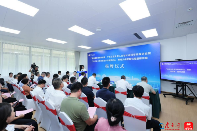 据了解,广东省数字教育研究院是广东省教育厅与广东工业大学共建,旨在推进数智技术与教育教学深度融合,开辟数字教育新赛道,助推教育强省建设。广东工业大学人文与社会科学高等研究院是学校独立设置的二级研究机构,是学校为加快推进工科底色人文社科发展而作出的重要部署,推进人文社科特色发展的重要平台;新质生产力研究中心是在广东省社会科学界联合会指导下建设,旨在打造成为推动新质生产力发展的理论研究平台。岭南文化数智化传播研究院是由广东工业大学、广东卫视、广东南方新媒体股份有限公司携手共建,旨在通过数字化、智能化手段,推动岭南文化创新发展和广泛传播。