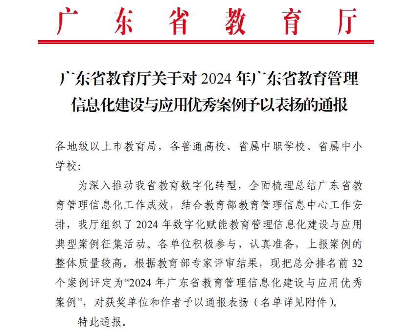 近日,广东省教育厅对2024年广东省教育管理信息化建设与应用优秀案例予以通报表扬,腾讯体育“赋能一流新工科:打造5G智慧校园AI伴随式个性化评价生态体系”(以下简称“AI伴随式个性化评价生态体系”)项目入选优秀案例。